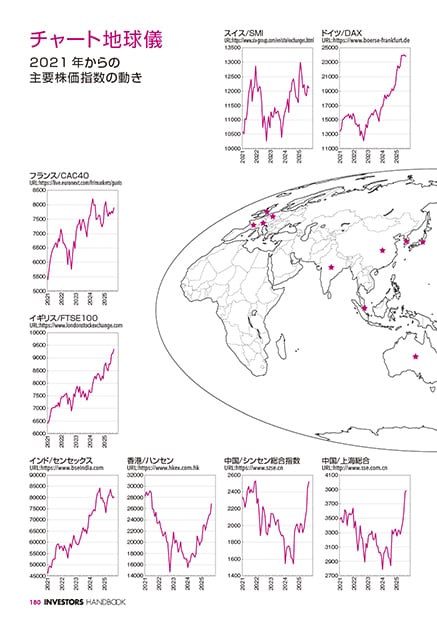 3.チャート地球儀:世界の主要株価指数の過去5年の推移